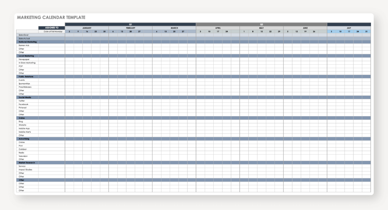 2025 Marketing Calendar Template Excel . Below is another marketing calendar template shared by gbt. A professionally designed calendar to organize, summarize and.
